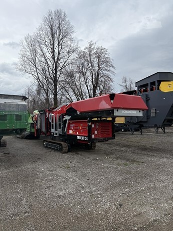 Heavy-Duty 12' x 4' Tracked Scalper • Cat 2.8 Tier 4, Stage 5 • Top Deck Punchplate • Bottom Deck Mesh • 10' Tracks • 12'x4' top and bottom deck • Catwalk both sides • Heavy one-piece hopper • 12" Chassis Riser Kit for Added Ground Clearance • Telescopic Extending Side Conveyors • Radio Remote Control Hours: 25 Serial Number: 24-336 Condition: New