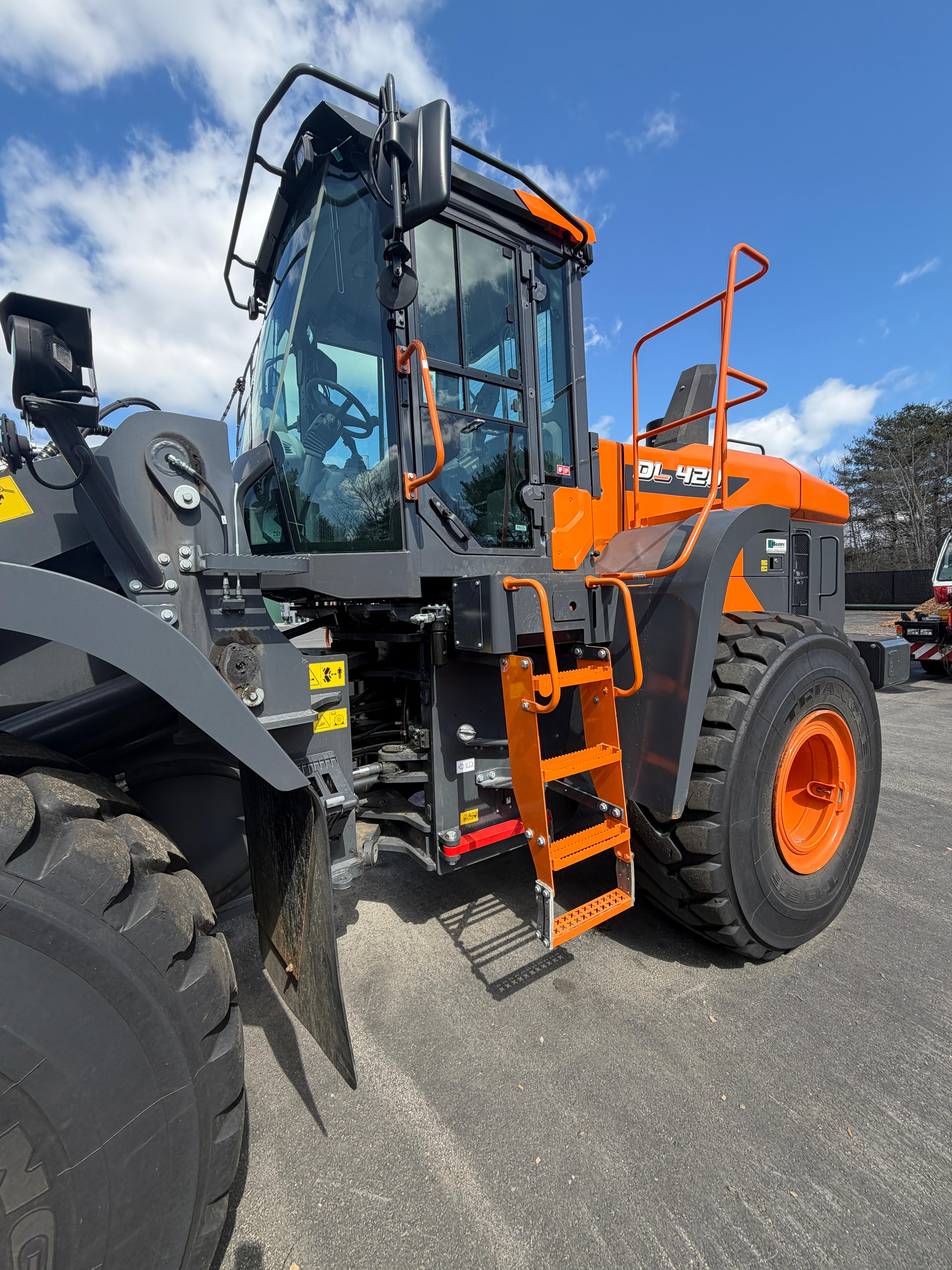 The Develon DL420 wheel loader is a high-performance heavy-duty loader designed for construction, aggregate, and material handling applications. Featuring powerful hydraulic systems, high lifting capacity, and a large bucket, it delivers efficient loading, hauling, and material movement in demanding job site conditions.