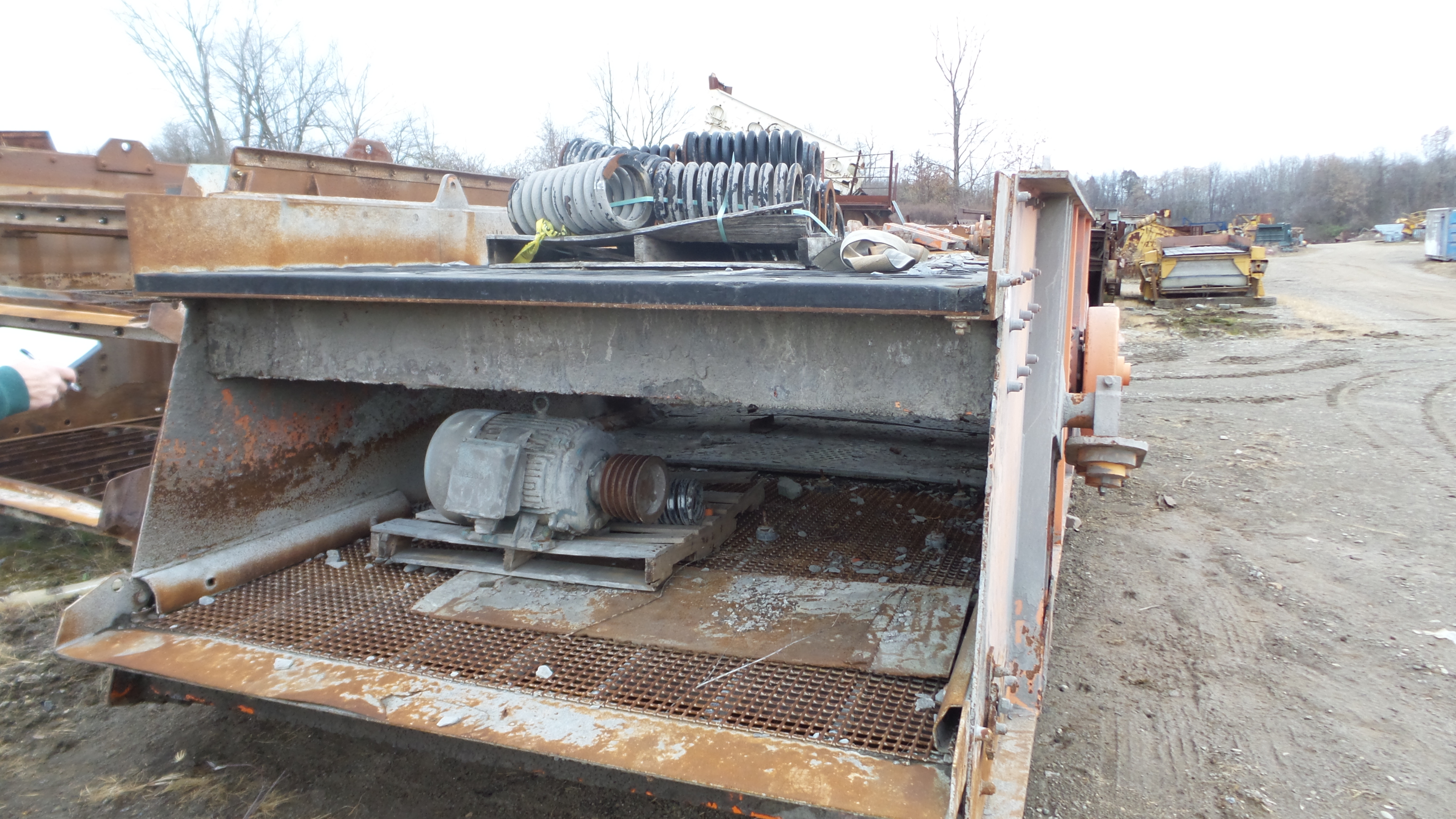 Tabor 8×20 double‑deck screen with springs and pads, 40 HP motor, 160 mm bearings, punch‑plate top deck, side‑tension second deck and 725 rpm