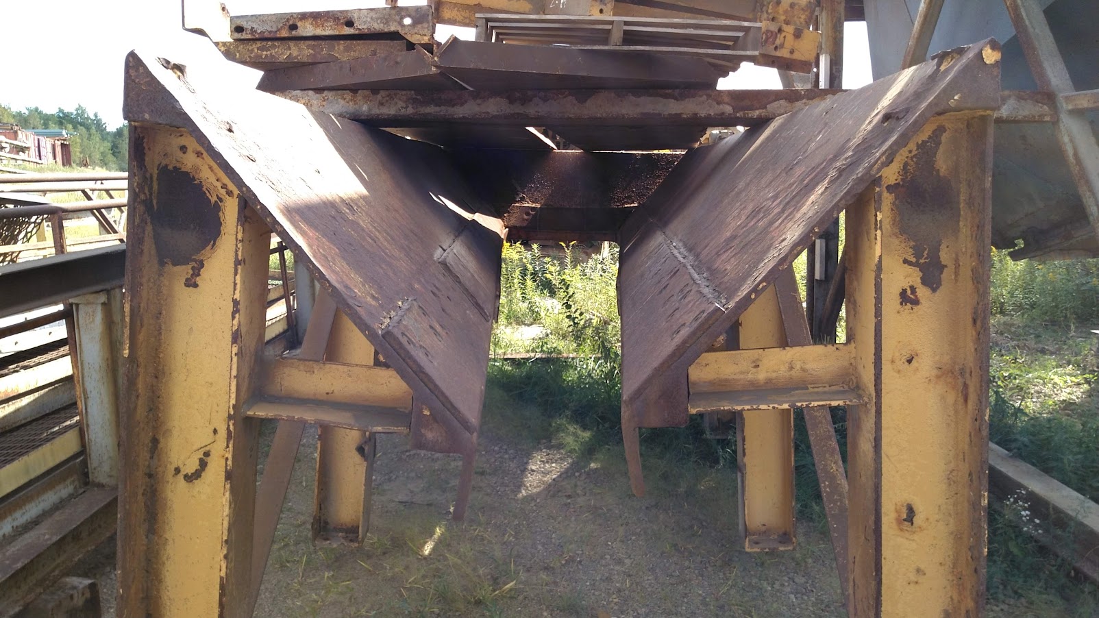 Skid-mounted feeder with 46×20 belt, 8×21' hopper, two-step grizzly sections, 30HP motor and side discharge chutes